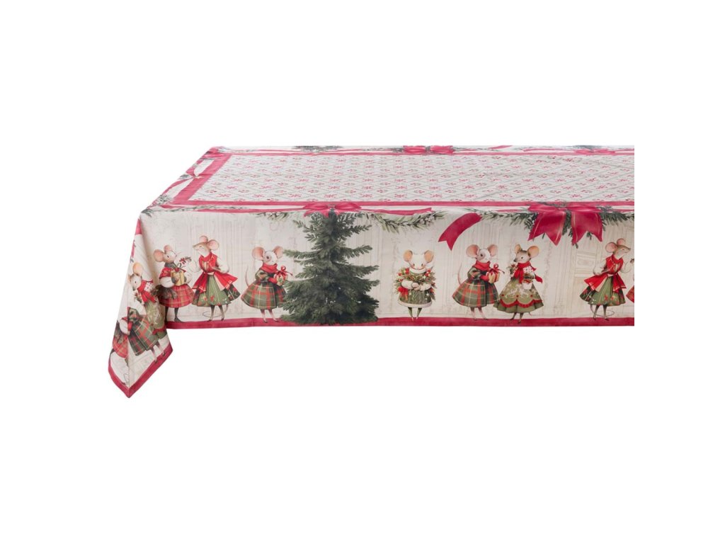 Stilvolltischtuch für Weihnachten von der italienischen MarkeWeißer Maricló aus der SammlungFamilie Noel ist das Hauptelement der diesjährigen Festtagsdekoration. Hergestellt aus100% Baumwolle, verziert mit dem Originalmotiv der gemalten Weihnachtsmäuse in traditionellen Farben -grün, rot und weiß. Dieseoriginalprodukt aus einer toskanischen Werkstatt verbindet Qualität, Verspieltheit und italienischen Charme.