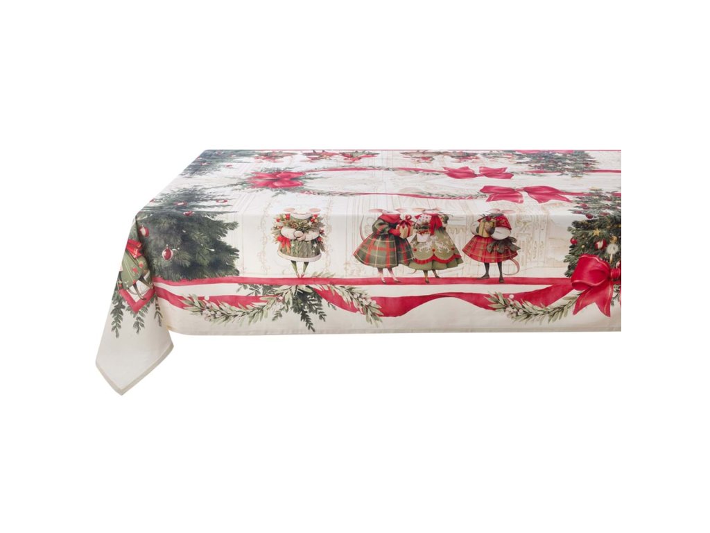 Stilvolltischtuch für Weihnachten von der italienischen MarkeWeißer Maricló aus der SammlungFamilie Noel ist das Hauptelement der diesjährigen Festtagsdekoration. Hergestellt aus100% Baumwolle, verziert mit dem Originalmotiv der gemalten Weihnachtsmäuse in traditionellen Farben -grün, rot und weiß. Dieseoriginalprodukt aus einer toskanischen Werkstatt verbindet Qualität, Verspieltheit und italienischen Charme.