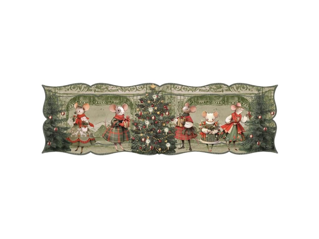 Praktisch und dekorativweihnachts-Vinylteppich von der italienischen MarkeWeißer Maricló aus der SammlungFamilie Noel ist das perfekte Accessoire, um Ihre festliche Einrichtung zu verschönern. Hergestellt aus100% Vinyler ist langlebig, pflegeleicht und eignet sich für die Küche, den Flur oder unter dem Esstisch. Dekoriert mit einem fabelhaftenmotiv von gemalten Weihnachtsmäusen und Schleifen in traditionellen Farben -grün, rot und weiß. Originalentwurf vontoskanische Werkstatt Blanc Maricló.