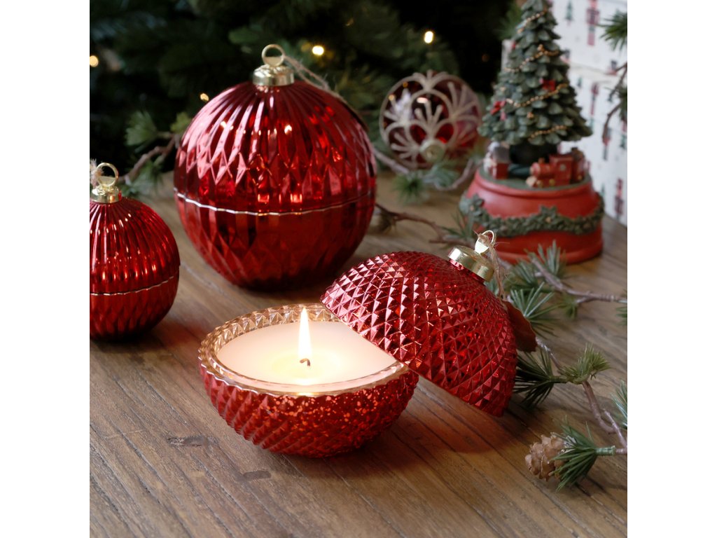 Bringen Sie Wärme und festliche Atmosphäre in Ihr Zuhause mit einem elegantenweihnachtskerze in Form eines Ornaments mit einem Muster der MarkeSchick antik. Diese dekorative Kerze in reichemkirschroter Farbton ist von hoher Qualitätparaffin und untergebracht in einem stilvollenglasbehälter mit einem subtilen Muster, das dem Raum einen Hauch von Luxus und Tradition verleiht.