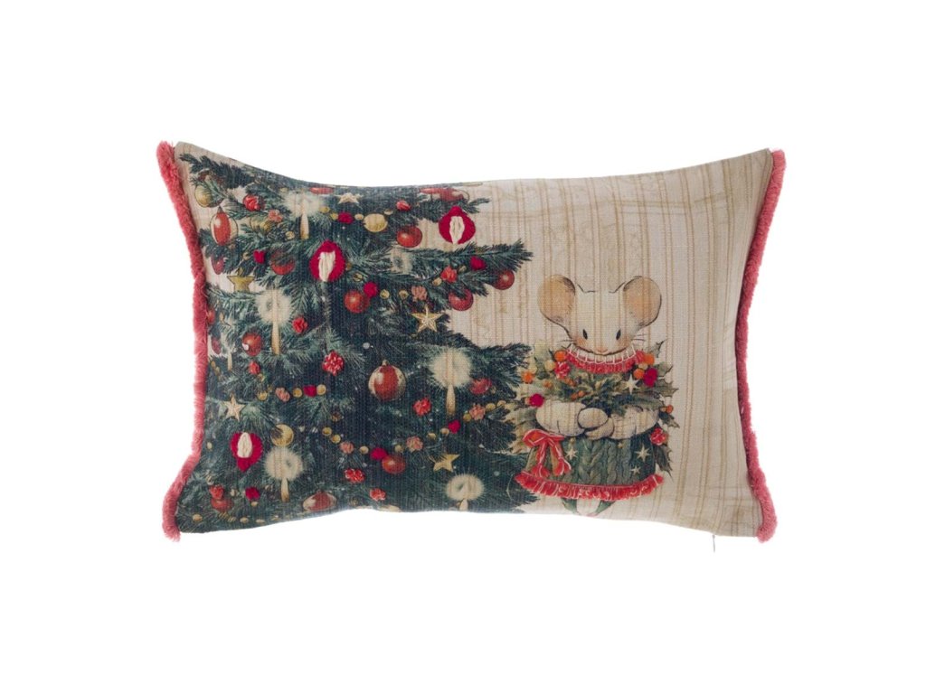 Stilvollweihnachtskissen mit Füllung von der italienischen MarkeWeißer Maricló aus der SammlungFamilie Noel ist das ideale Accessoire für ein festliches Interior Tuning. Hergestellt aus100% Baumwolle, mit hoher Qualitätpolyester-Füllung, verziert mit feinembedruckt mit gemalten Weihnachtsmäusen und Schleifen in traditionellen Farben -grün, rot und weiß. Dank der Dimension33 × 50 cm ist für Sofa, Sessel oder Bett geeignet.