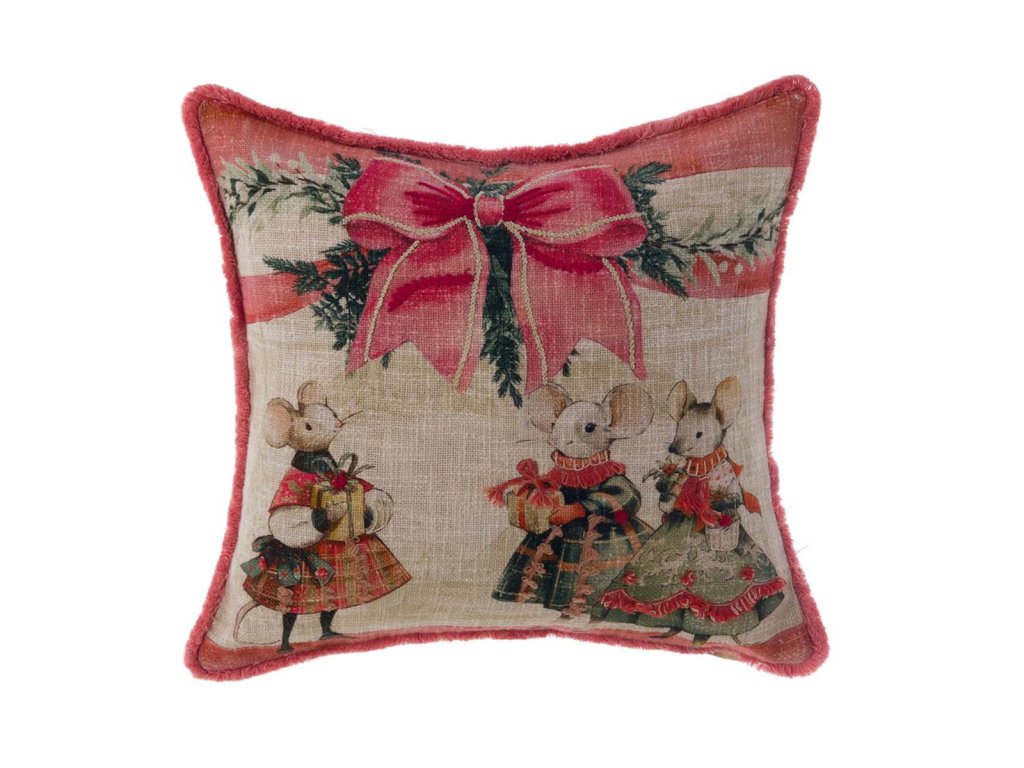 Stilvollweihnachtskissen mit Füllung von der italienischen MarkeWeißer Maricló aus der SammlungFamilie Noel ist das ideale Accessoire für ein festliches Interior Tuning. Hergestellt aus100% Baumwolle, mit hoher Qualitätpolyester-Füllung, verziert mit feinembedruckt mit gemalten Weihnachtsmäusen und Schleifen in traditionellen Farben -grün, rot und weiß. Dank der Dimension45 × 45 cm ist für Sofa, Sessel oder Bett geeignet.