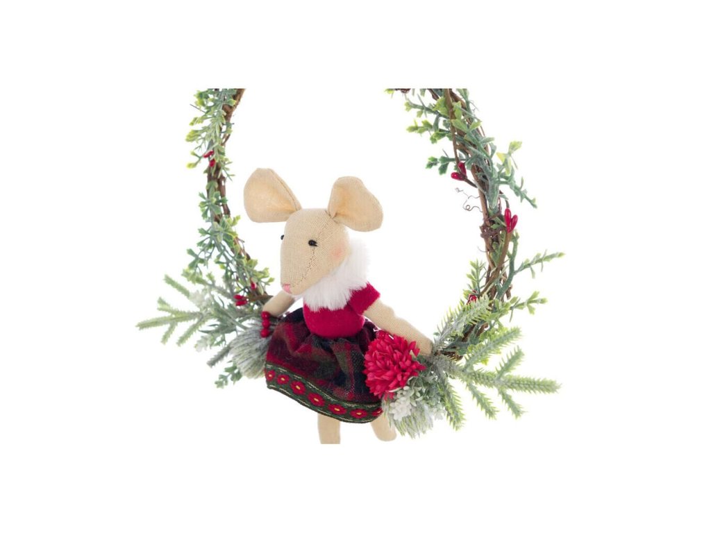 Weihnachtskranz mit einer sitzenden Stoffmaus des toskanischen Herstellers Blanc Mariclò.