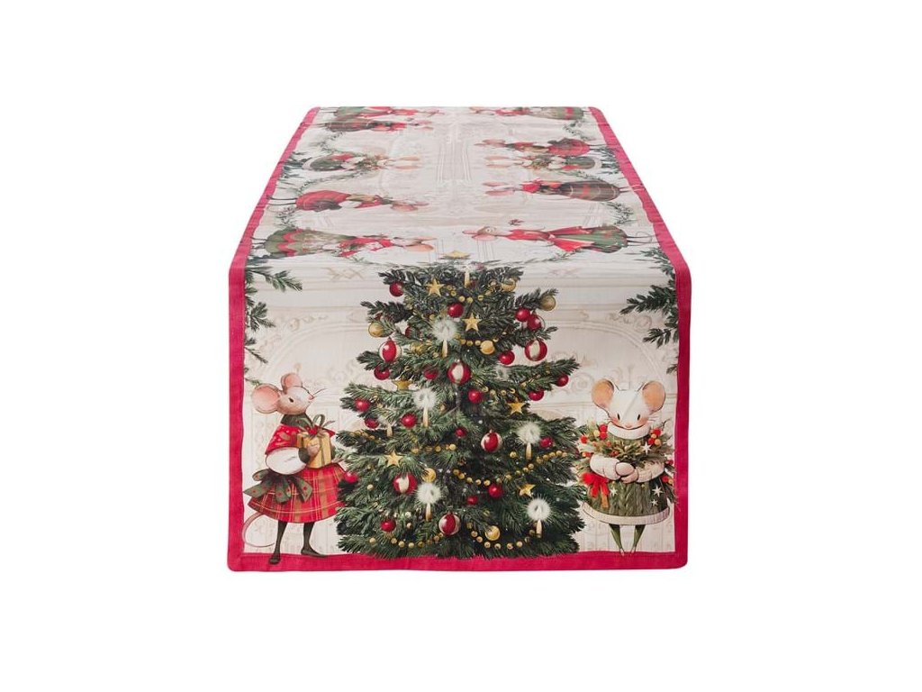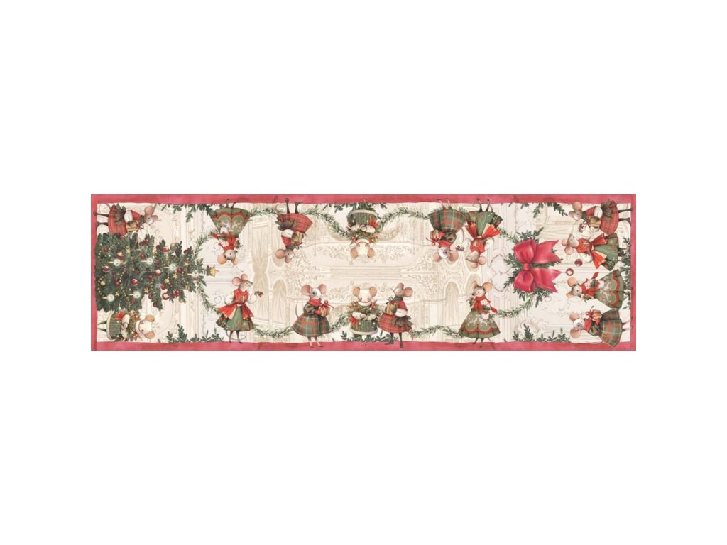 Stilvollweihnachts-Läufer von der italienischen MarkeWeißer Maricló aus der SammlungFamilie Noel ist das textile Accessoire der festlichen Jahreszeit. Hergestellt aus100% Baumwolle, verziert mit dem Originalmotiv der gemalten Weihnachtsmäuse in traditionellen Farben -grün, rot und weiß. Geeignet für Tisch, Kommode oder Couchtisch.