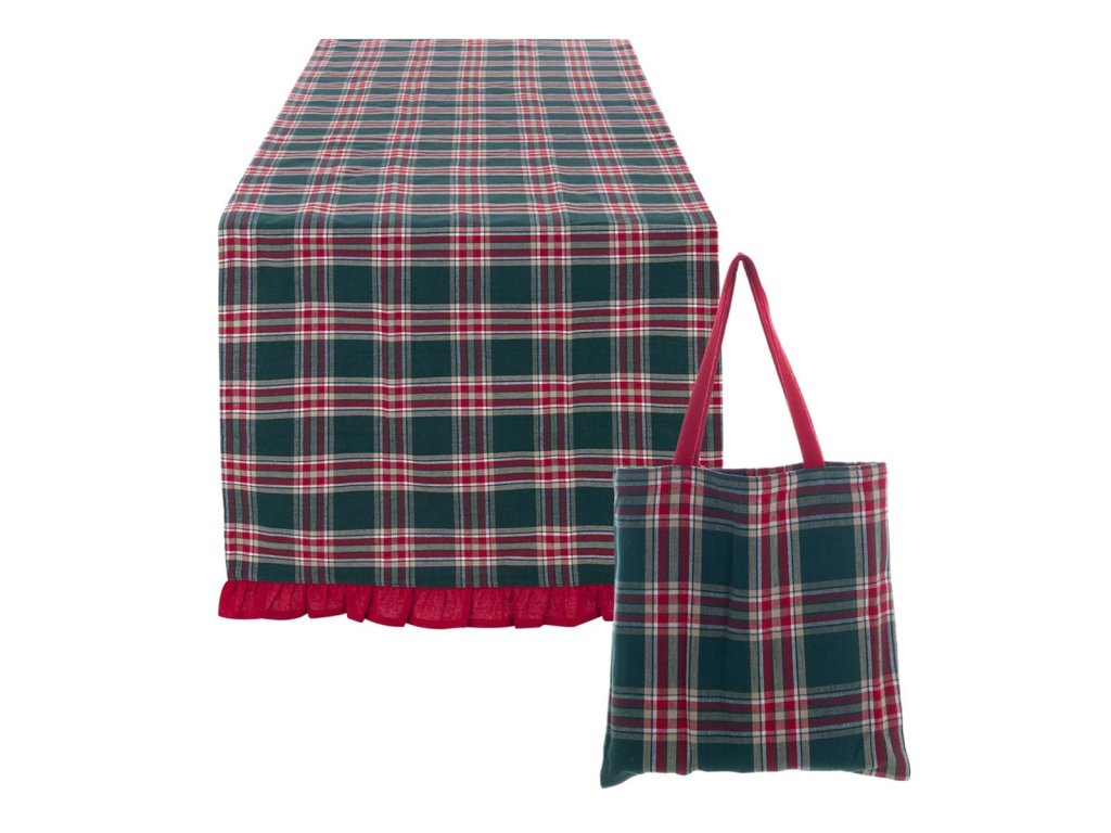 Baumwoll-Weihnachtsset aus zwei Läufern mit Rüsche in einer Tasche aus der Montana-Kollektion des toskanischen Herstellers Blanc Mariclò