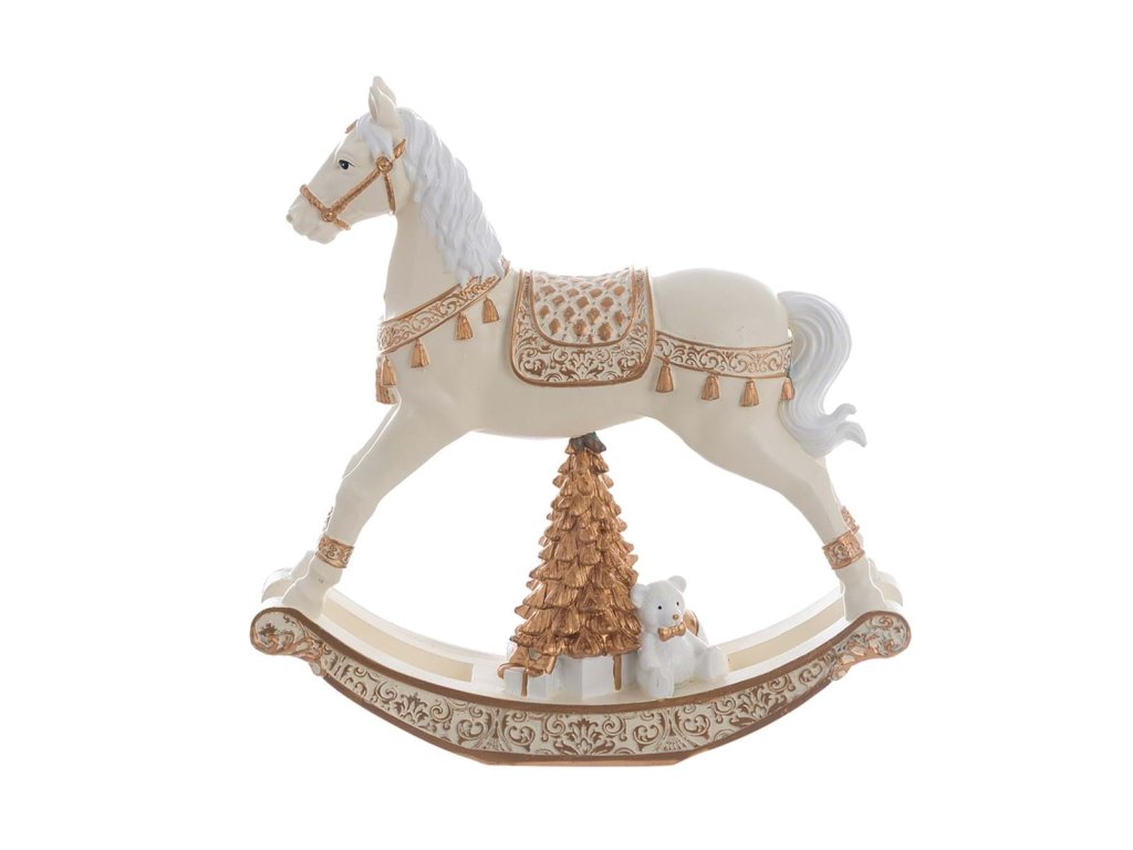 Weihnachtsdekoration Blanc Mariclo - weißes Schaukelpferd mit goldenen Details, Kollektion Dora, 18 × 4,5 × 18,5 cm