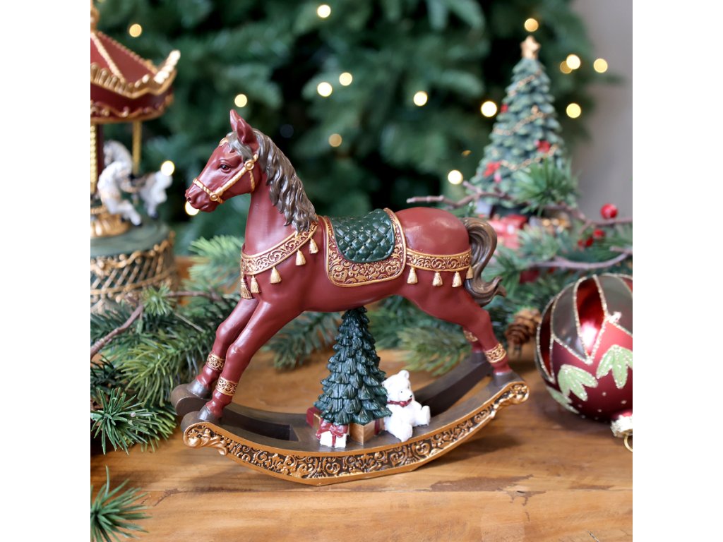 Verleihen Sie Ihrem Interieur mit Dekorationen festlichen CharmeNoël Schaukelpferd von einer beliebten MarkeSchick antik. Diese wunderbareweihnachten Schaukelpferd in der traditionellengrün-rote Farbkombination ist von hoher Qualitätpolyresindies ermöglicht eine präzise Detailarbeit und eine lange Lebensdauer. Seinfarbton Kirsche verleiht der Dekoration ein warmes und nostalgisches Aussehen, ideal um eine gemütliche Atmosphäre in der Weihnachtszeit zu schaffen.