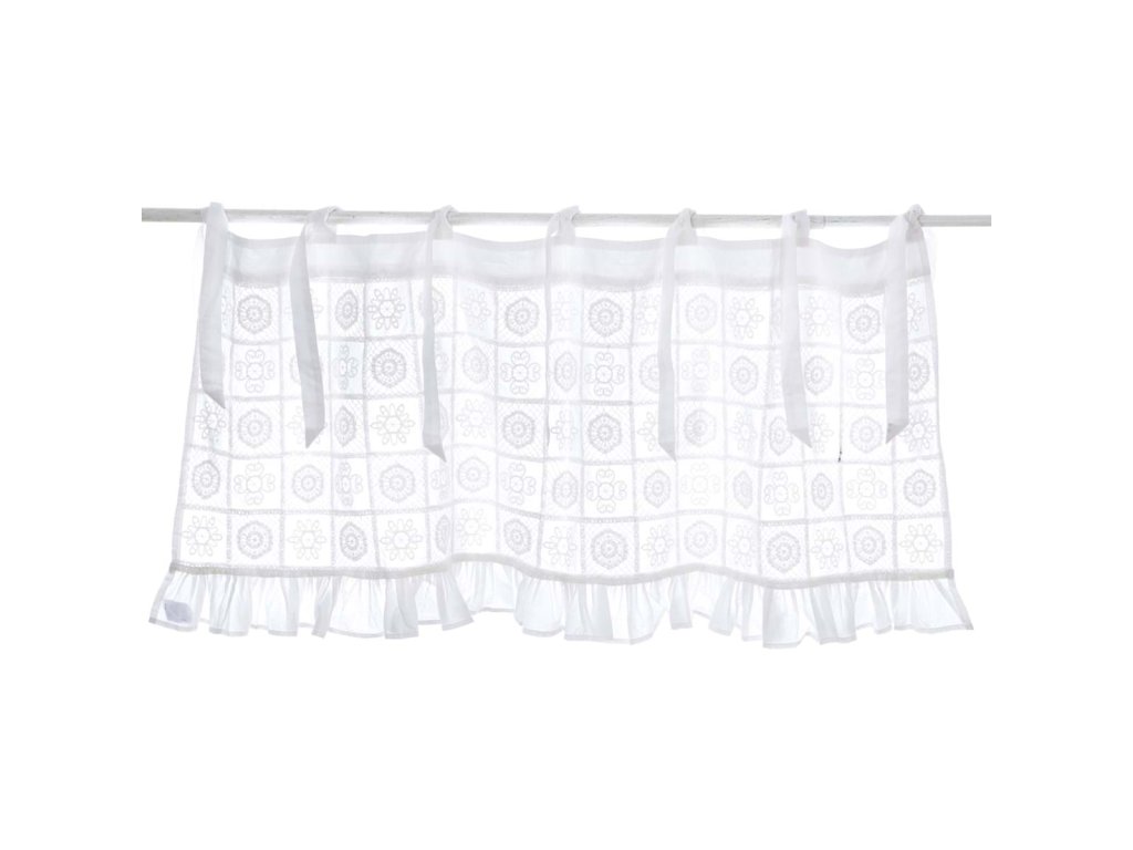 Das Scharnier ist hergestellt aus100% Baumwolle und beabsichtigtzum Binden mit Bögenwas seinen Shabby-Chic-Look unterstreicht. Ideal für Küche, Esszimmer oder Fenster im Landhausstil, wo es eine angenehme, helle Atmosphäre schafft. Das Design und die Verarbeitung sind typisch für die toskanische MarkeWeißer Mariclò.