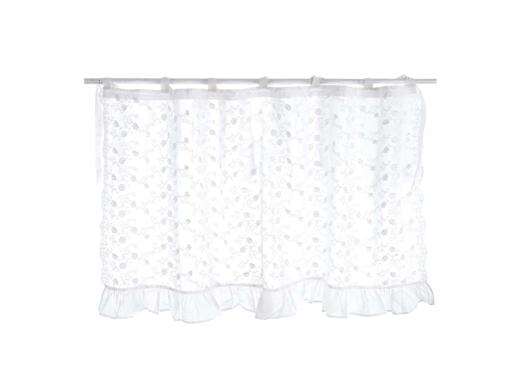 Romantischkurzer bestickter Vorhang in Weiß ist eine schöne Ergänzung für die Küche oder die ländliche Einrichtung. Zartstickerei und Zierrüsche verleihen dem Vorhang eine Leichtigkeit und einen traditionellen Landhauscharakter, der jeden Raum gemütlich wirken lässt.
