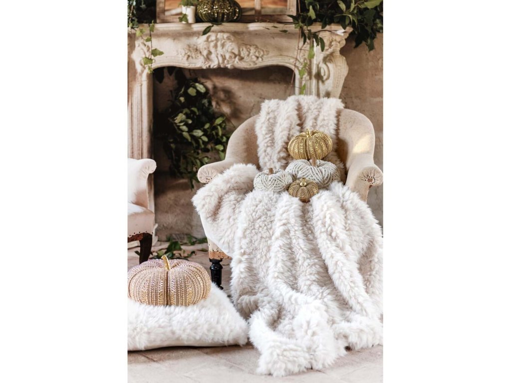 Textilkürbis Dekoration - Blanc Mariclò, weiß mit goldenen Goralen, Polyester.