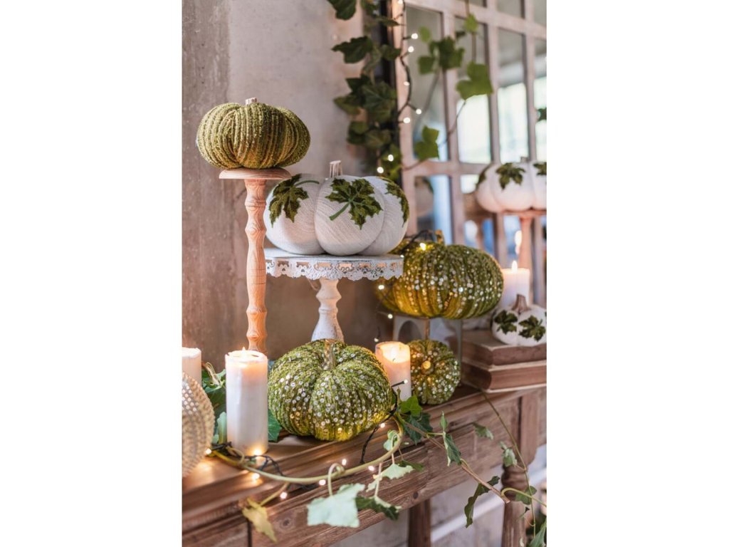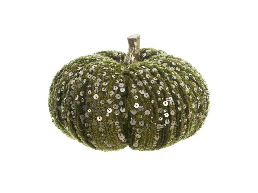 Textilkürbis Dekoration - Blanc Mariclò, grün mit goldenen Goralen, Polyester.